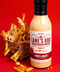 Lane’s Sorta White Sauce is a creamy, tangy Alabama-style BBQ sauce with a peppery kick. It’s brilliant on chicken, pork, seafood and even chips — adding a bright, zesty finish that lifts the whole dish.