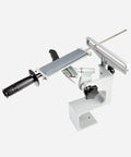 The EZE-Sharp blade sharpener is a robust, guided clamp-and-rail setup with a fine and coarse stone, so you can put consistent razor-sharp edges on boning, skinning and other butcher knives.